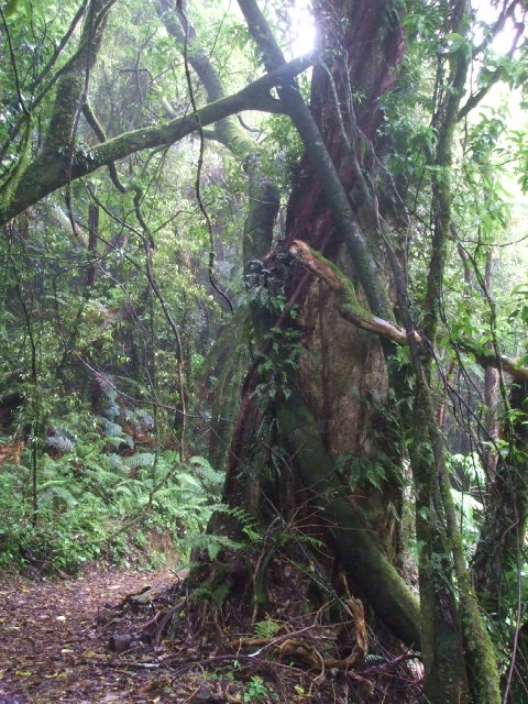 Mount Ngongotaha Walks - My brother Dean and niece Kerry enjoying the Nature WalkAs an example, Mount Ngongotaha has one lonely Rata tree. It is a NZ native tree that is hundreds of years old and some 40m high. To stop the introduced possums from destroying it, trees have had to be cleared away from the surrounding area; this stops the possums jumping across. As well, some type of band has been placed around the trunk so the possums can’t climb up to the canopy.
